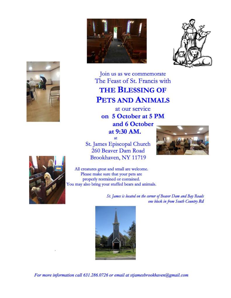 Join us for our annual commemoration of St. Francis with the blessing of pets and animals. Toy and stuffed animals are welcome too.