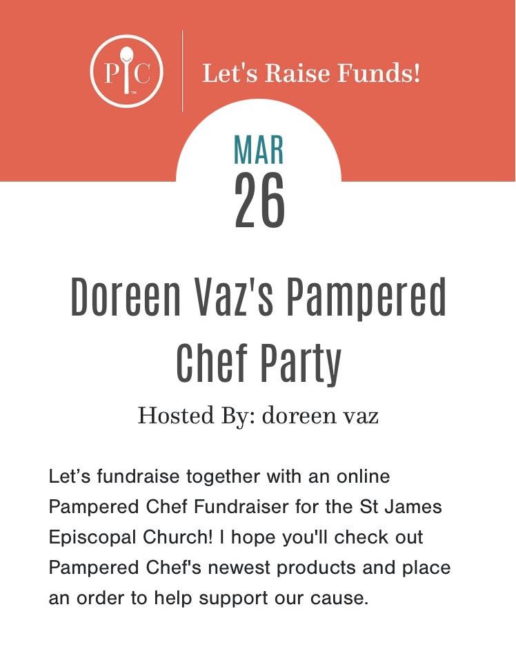 Categories General Pampered Chef Fundraiser Post author By stjamesbrookhaven Post date 30/03/2022 Doreen is currently hosting our Spring Pampered Chef Fundraiser. Please click on the link below and help support our ministry at St. James. https://www.pamperedchef.com/party/doreenvaz0326 Share this: Click to share on X (Opens in new window) X Click to share on Facebook (Opens in new window) Facebook Click to share on LinkedIn (Opens in new window) LinkedIn Like Loading... Related ← 4 Lent 2022 → 5 Lent 2022
