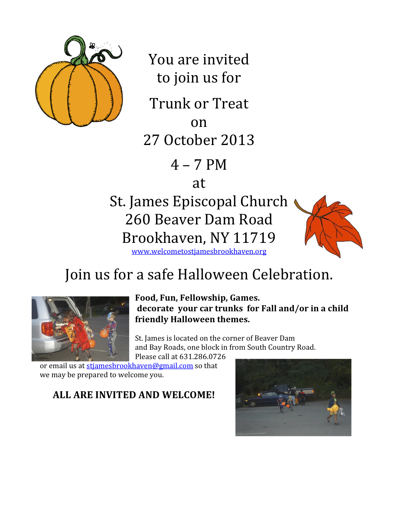 Join us this Sunday for service at 9:30AM and then come back in the afternoon for Trunk or Treat.  Trunk or treat13All are invited and welcome to bring a friend!