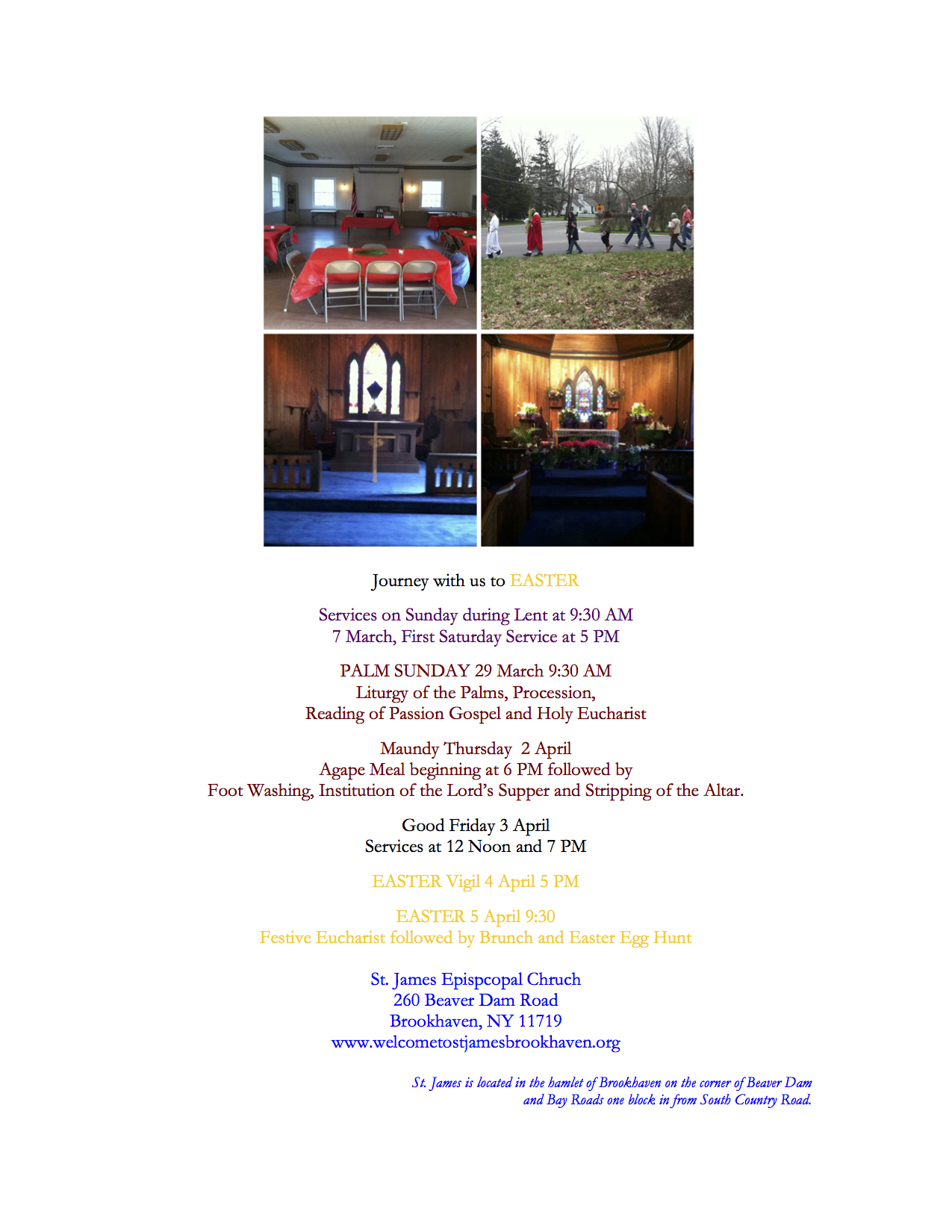 Join us as we take up our crosses and follow Jesus during Holy Week. Please note, not all of the services will happen at St. James.