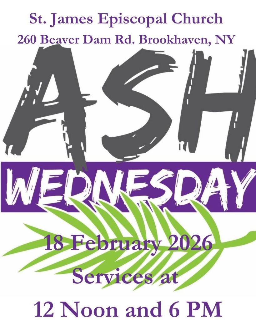18 February Ash Wednesday Services at 12Noon and 6 PM